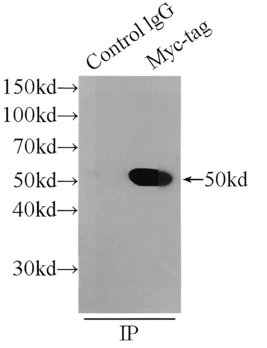 IP result of MYC tag Rabbit Monoclonal antibody(ARA678) (IP:4ug; Detection:1:10000) with Transfected HEK-293 cells lysate 300ug.