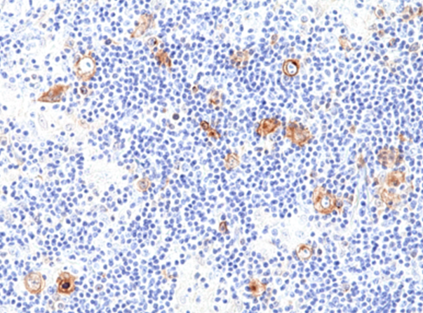 图1:使用抗CD30兔单克隆抗体(克隆RM425)对福尔马林固定和石蜡包埋的霍奇金淋巴瘤组织切片进行免疫组织化学染色。