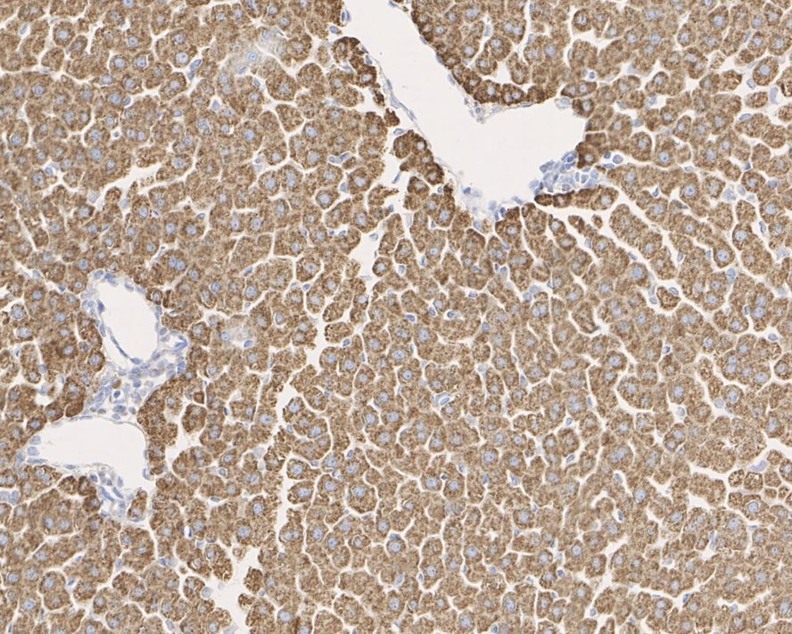 Immunohistochemical analysis of paraffin-embedded rat liver tissue with PCB Rabbit Monoclonal Antibody(ARA718).