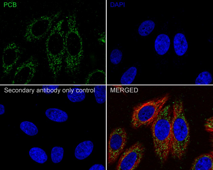 Immunocytochemistry analysis of HepG2 cells labeling PCB with PCB Rabbit Monoclonal Antibody(ARA718).