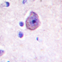 Immunohistochemical analysis of Rhodopsin staining in human brain formalin fixed paraffin embedded tissue section. The section was pre-treated using heat mediated antigen retrieval with sodium citrate buffer (pH 6.0). The section was then incubated with the antibody at room temperature and detected using an HRP conjugated compact polymer system. DAB was used as the chromogen. The section was then counterstained with haematoxylin and mounted with DPX.