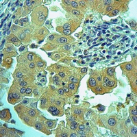 Immunohistochemical analysis of S100-A7 staining in human lung cancer formalin fixed paraffin embedded tissue section. The section was pre-treated using heat mediated antigen retrieval with sodium citrate buffer (pH 6.0). The section was then incubated with the antibody at room temperature and detected using an HRP conjugated compact polymer system. DAB was used as the chromogen. The section was then counterstained with haematoxylin and mounted with DPX.