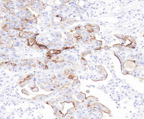 The sodium-dependent phosphate transport protein 2B (NaPi-2b, SLC34A2) is a sodium dependent inorganic phosphate transporter that regulates phosphate homeostasis in various organs, including the lung, liver and endometrium. SLC34A2 is predominantly expressed in lung and endometrium. In tumor tissue, it is mainly expressed in ovarian cancer and endometrial cancer. Research has shown that the NaPi2b protein encoded by SLC34A2 is highly expressed in ovarian cancer tissues, especially in serous ovarian cancer, which makes it an important biomarker for assisting in the diagnosis of ovarian cancer. In addition, the expression level of SLC34A2 is closely related to the prognosis of ovarian cancer patients and can be used as an indicator to evaluate patient survival and disease progression.