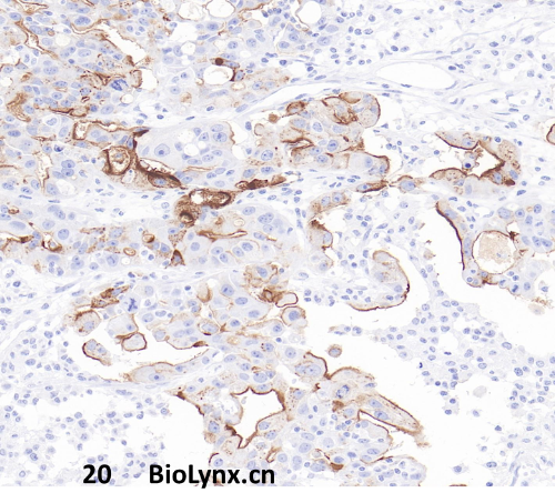 The sodium-dependent phosphate transport protein 2B (NaPi-2b, SLC34A2) is a sodium dependent inorganic phosphate transporter that regulates phosphate homeostasis in various organs, including the lung, liver and endometrium. SLC34A2 is predominantly expressed in lung and endometrium. In tumor tissue, it is mainly expressed in ovarian cancer and endometrial cancer. Research has shown that the NaPi2b protein encoded by SLC34A2 is highly expressed in ovarian cancer tissues, especially in serous ovarian cancer, which makes it an important biomarker for assisting in the diagnosis of ovarian cancer. In addition, the expression level of SLC34A2 is closely related to the prognosis of ovarian cancer patients and can be used as an indicator to evaluate patient survival and disease progression.