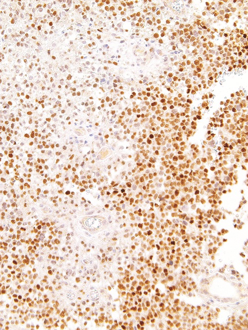 Immunohistochemical staining of human mantle cell lymphoma tissue sections using SOX-11 Mouse Monoclonal Antibody (ARM566).