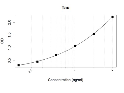 Microtiter plates were coated with ARA6845 as the capture antibody. Recommbinant Tau protein (AXP6617) was applied as the antigen. Peroxidase conjugated Tau (T17) Antibody (ARA6837) served as the detection antibody.