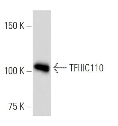 TFIIIC110 (2395C2a) is recommended for detection of TFIIIC110 of human origin by Western Blotting (starting dilution 1:200, dilution range 1:100 - 1:1000) and immunoprecipitation [1 - 2 µg per 100 - 500 µg of total protein (1 ml of cell lysate)].
