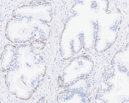 Immunohistochemical staining of human prostate tissue was performed using TRIM29 Rabbit Monoclonal Antibody(ARA963).